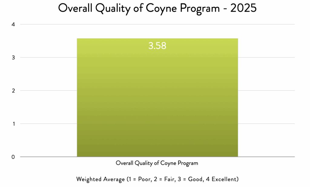 In 2025, on a scale of 1-4, Coyne Families Rated the Overall Quality of the Program: